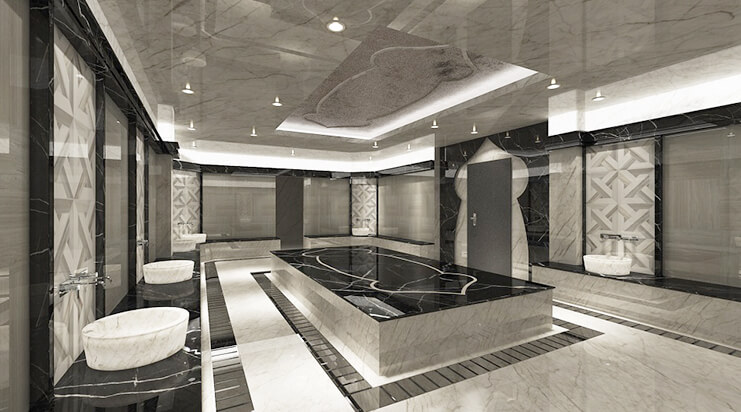 Spa Kullanım Alanları: Sauna – Yarı Olimpik Havuz– Hamam – Jakuzi – Fitness Center – Tuz Odası – Sıcak Taş Yatakları – Buhar Odası – Kar Çeşmesi – Şok Kovası